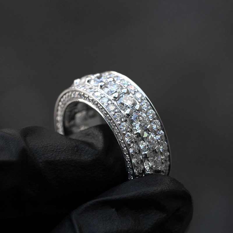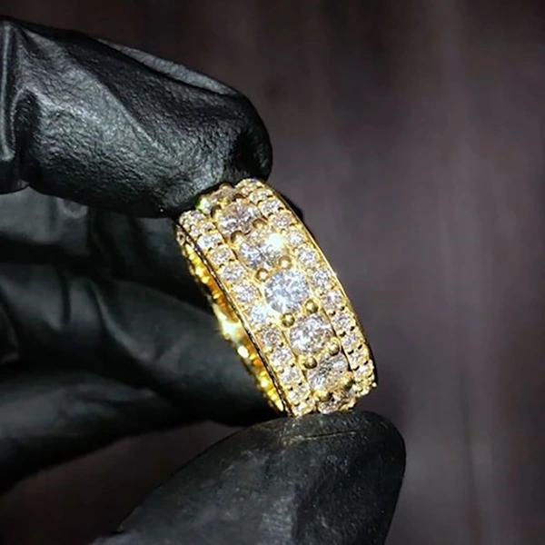 خاتم أوروبي وأمريكي مرصع بالكامل بتصميم محايد أنيق لشخصية مميزة، مجوهرات خفيفة فاخرة للجنسين ومتعددة الاستخدامات