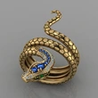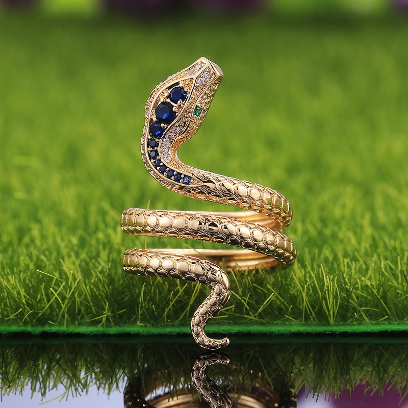 خاتم إبداعي على شكل ثعبان الأكثر مبيعًا مع خاتم من الزركون الأزرق الياقوتي للجنسين خاتم مجوهرات أوروبي وأمريكي