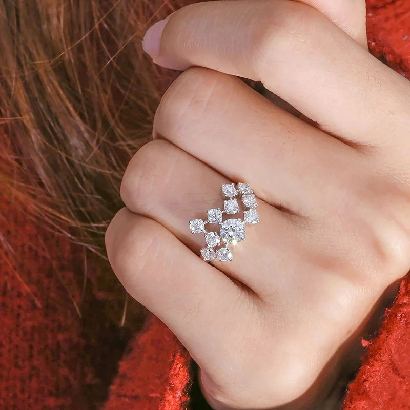 خاتم إصبع السبابة على الطراز الأوروبي والأمريكي الراقي، خاتم أنيق فائق اللمعان مليء بالنجوم