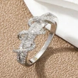 خاتم كلاسيكي مرصع بأحجار الزركون المقلد بأربعة مخالب للنساء، خاتم ذراع ملتوي مزدوج اللون، خاتم خطوبة وزواج للنساء