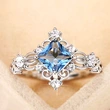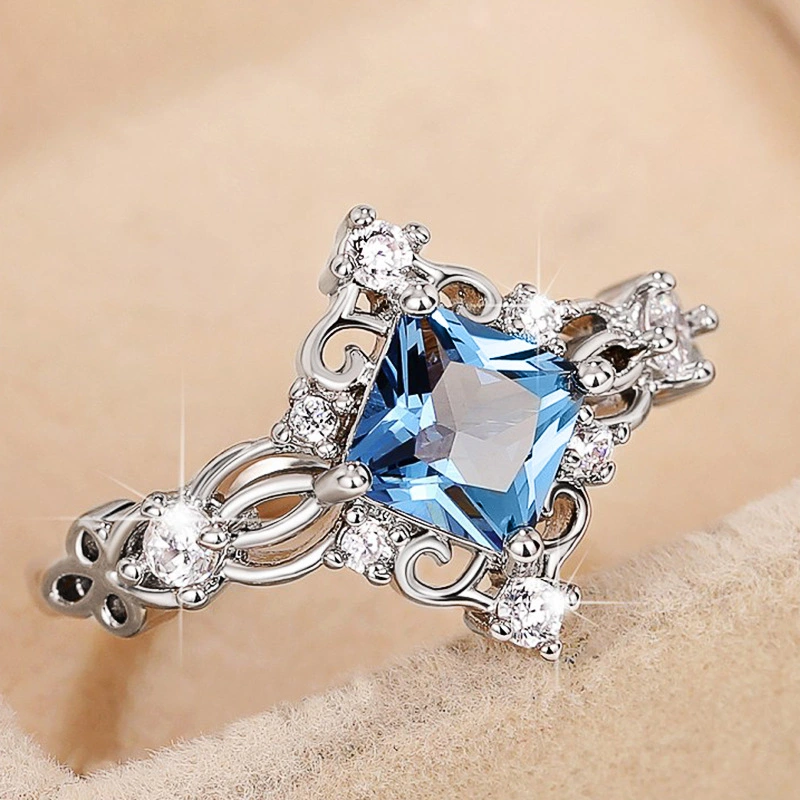خاتم إصبع السبابة من الأحجار الكريمة المزيفة باللون الأزرق البحري بنمط أميرة مرصع بالألماس والزركون، خاتم إصبع السبابة النبيل والرائع