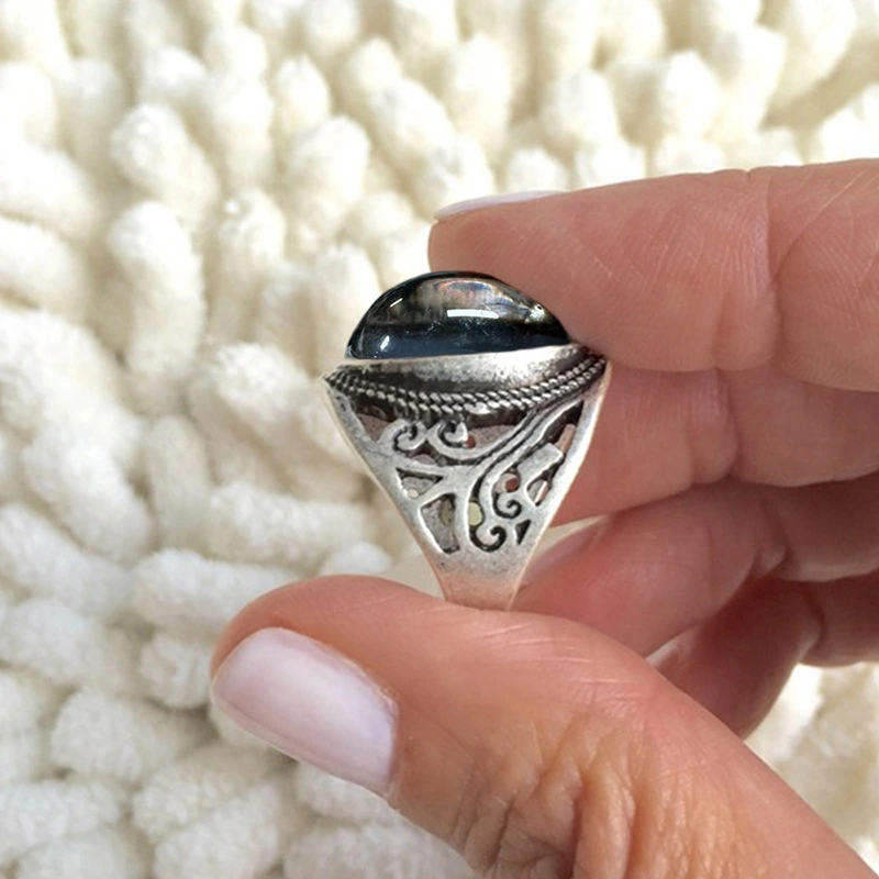 خاتم إيبوكسي بيضاوي عتيق للنساء، خاتم غامض أدبي عتيق، مجوهرات رائجة قديمة