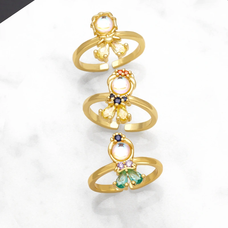 خاتم الأميرة الخيالية ذو المزاج الجديد الأكثر مبيعًا من المجوهرات خاتم فتاة الزركون الملون rim20