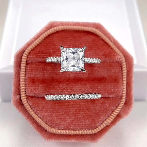 خاتم الأميرة الماسي المربع ذو المخالب الأربعة اللامعة للغاية من مجموعة خواتم بلينغ بلينغ من المجوهرات الأوروبية والأمريكية