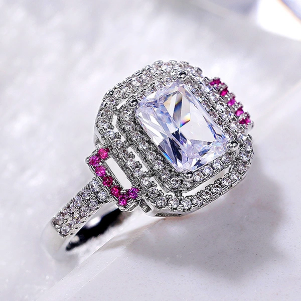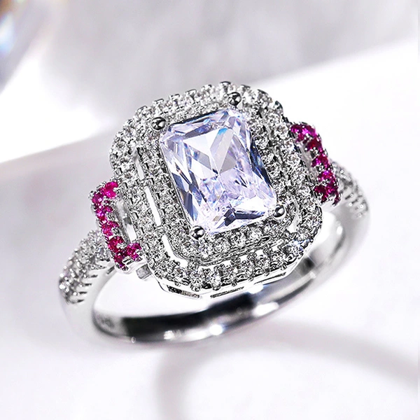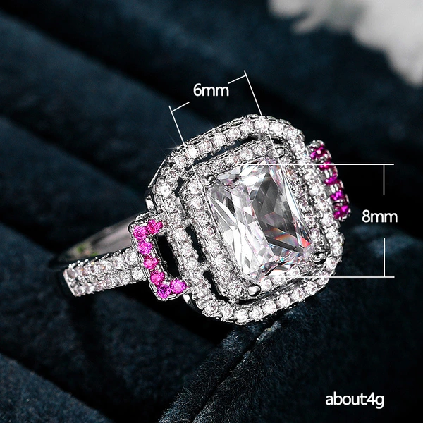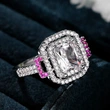 خاتم الأميرة المربع من الألماس الوردي الجديد الأكثر مبيعًا خاتم خطوبة نسائي أوروبي وأمريكية أنيق من الألماس
