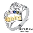 خاتم الجدة الماسي الجديد الأكثر مبيعًا على شكل قلب خاتم ملون لعيد الأم