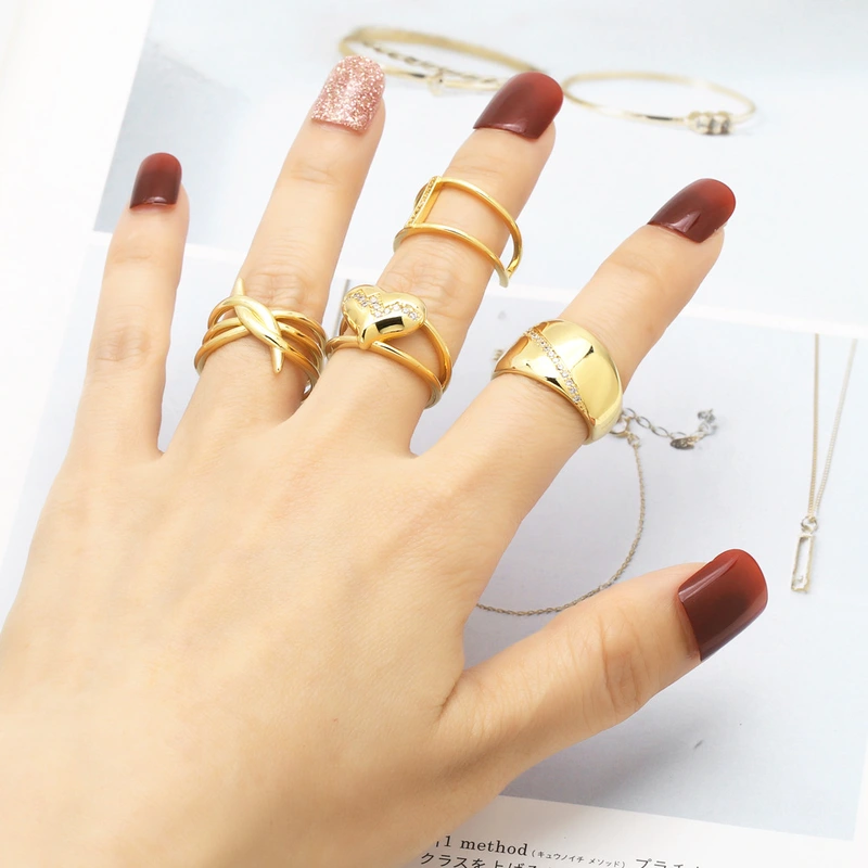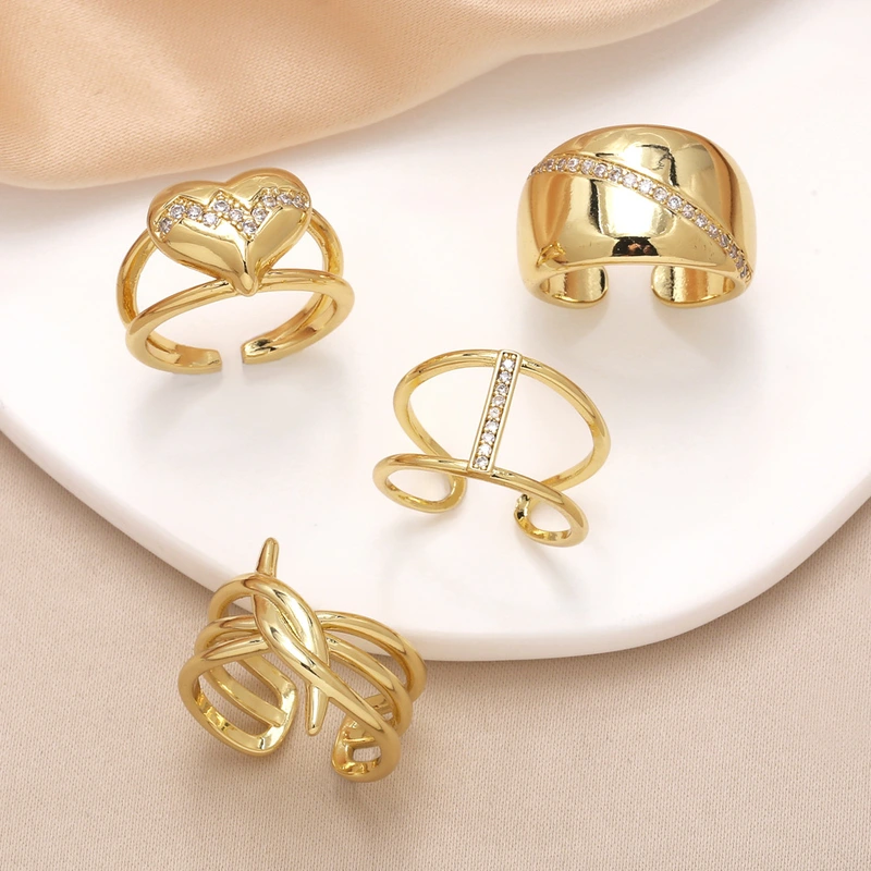 خاتم الحب السلس الأكثر مبيعًا في المجوهرات للنساء مطلي بالذهب خاتم مفتوح من الزركون rim36