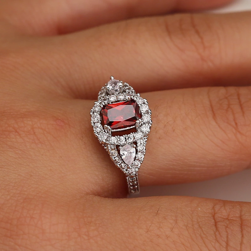 خاتم الزركون الأحمر المصنوع من الأحجار الكريمة والأزياء الإبداعية للبيع بالجملة للنساء مصدر التصدير