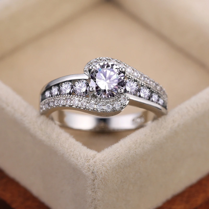 خاتم كلاسيكي مرصع بأحجار الزركون المقلد بأربعة مخالب للنساء، خاتم ذراع ملتوي مزدوج اللون، خاتم خطوبة وزواج للنساء