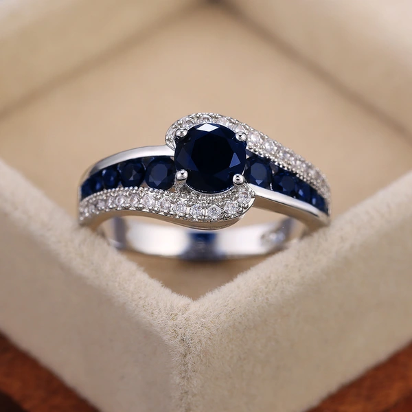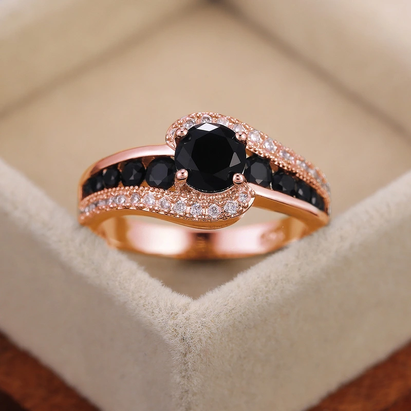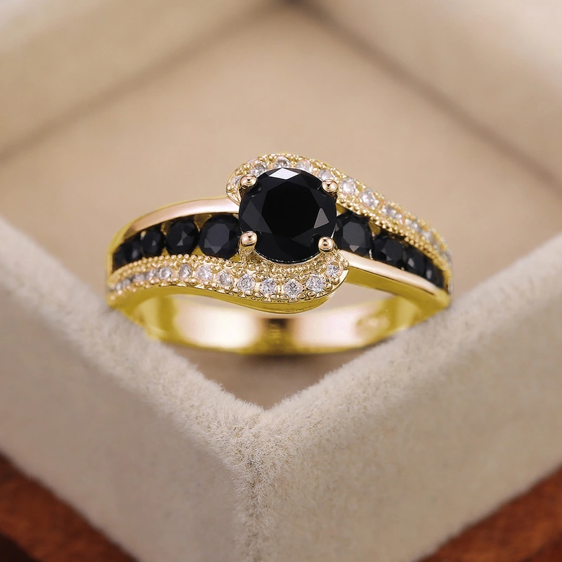 خاتم الزركون الأسود الأكثر مبيعًا مجوهرات هدية أنيقة للسيدات في المكتب للبيع بالجملة
