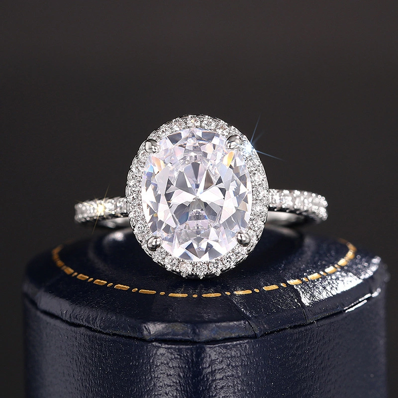 خاتم الزركون البيضاوي الأكثر مبيعًا للنساء، خاتم واحد أنيق وعصري، مناسب للخطوبة والزفاف، مناسب للمباراة الشعبية