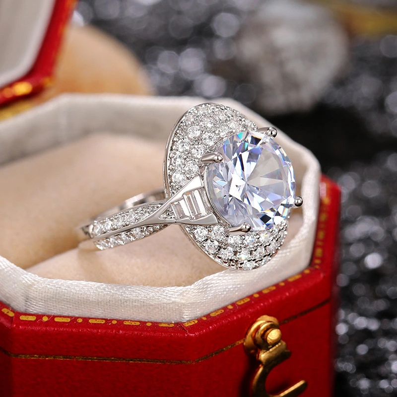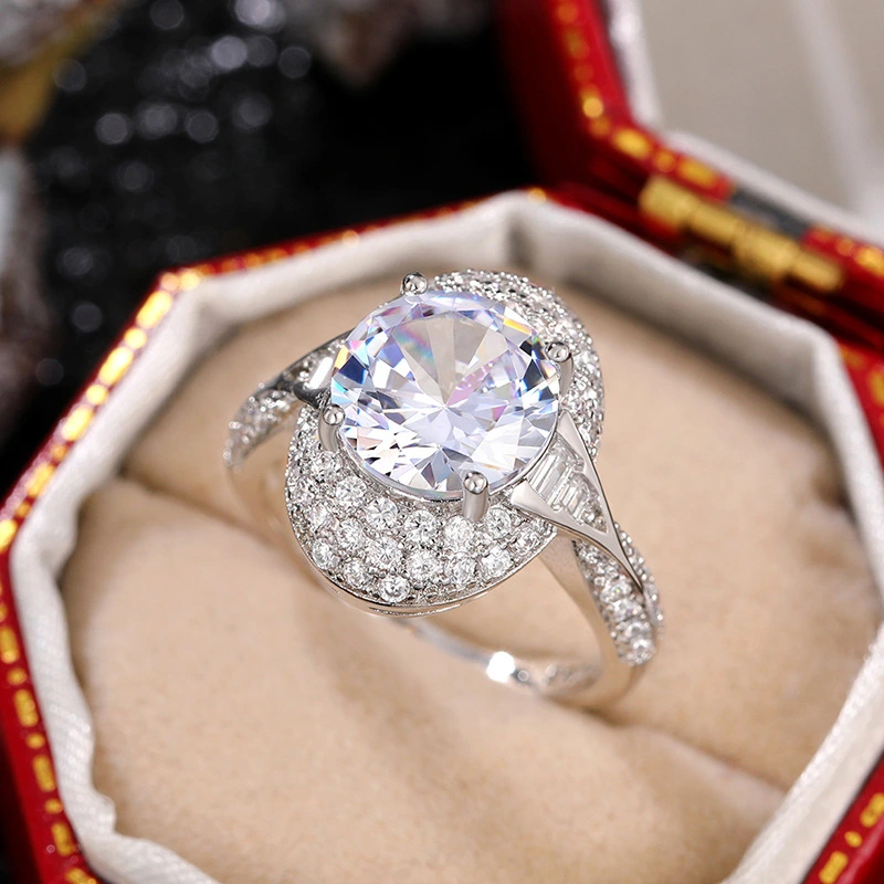 خاتم الزركون الكبير الدائري اللامع للغاية ذو الطراز الأوروبي والأمريكي الأكثر مبيعًا خاتم بسيط بيضاوي الشكل جديد للبيع المباشر من المصنع