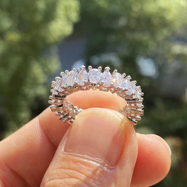 خاتم الزركون على شكل دمعة على شكل أزياء أوروبية وأمريكية جديدة رائجة البيع مبالغ فيه للنساء مجوهرات للأزواج على شكل دائرة كاملة