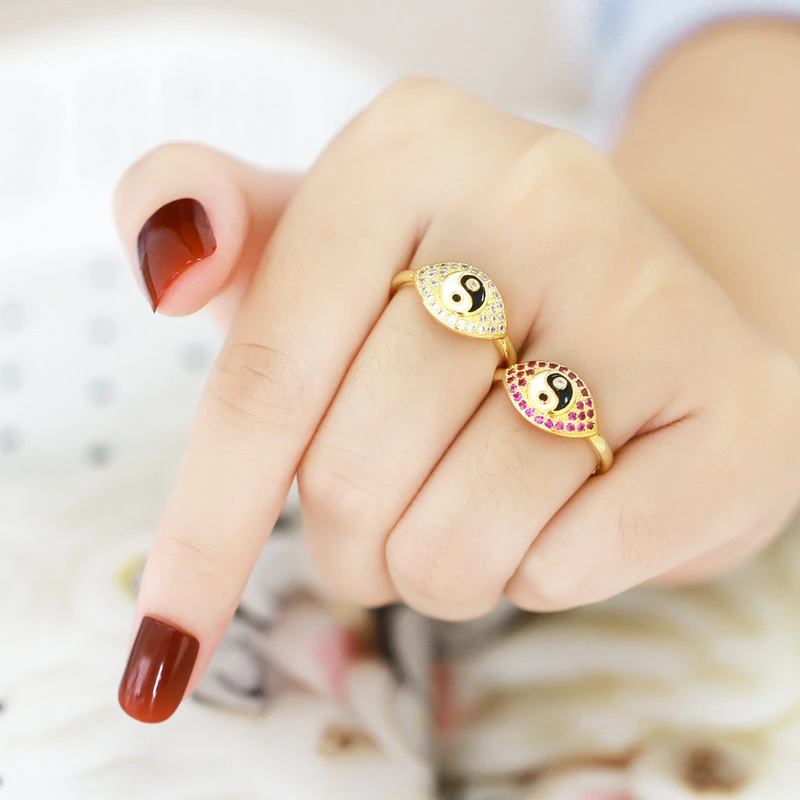 مجوهرات على الطراز الياباني والكوري، خاتم عين حصان عادي فائق الوميض، خاتم مزاجي بسيط عصري، مجوهرات نسائية