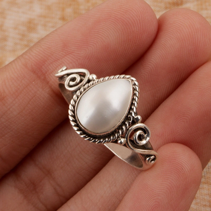 خاتم باروكي عتيق الطراز للنساء مصنوع من اللؤلؤ المقلد خاتم أنيق ومجوهرات مزاجية أدبية كلاسيكية