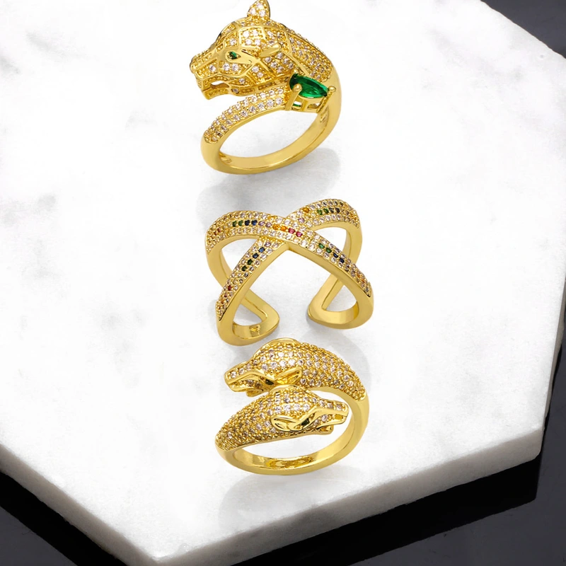 خاتم بتصميم رأس نمر مرصع بالألماس بالكامل بتصميم أوروبي وأمريكية، خاتم نسائي بسيط وأنيق على شكل صليب أحمر riq77
