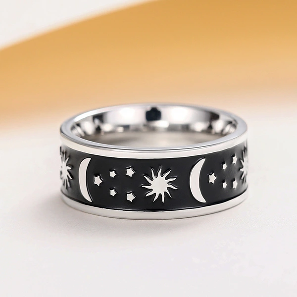 خاتم بتصميم عصري للتجارة الإلكترونية على شكل نجمة وقمر للجنسين، مجوهرات عصرية مميزة