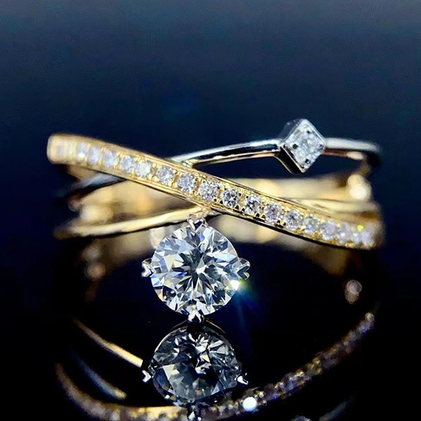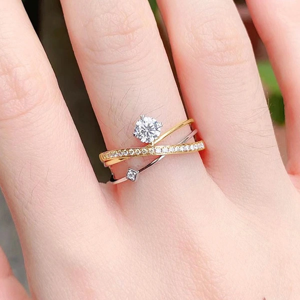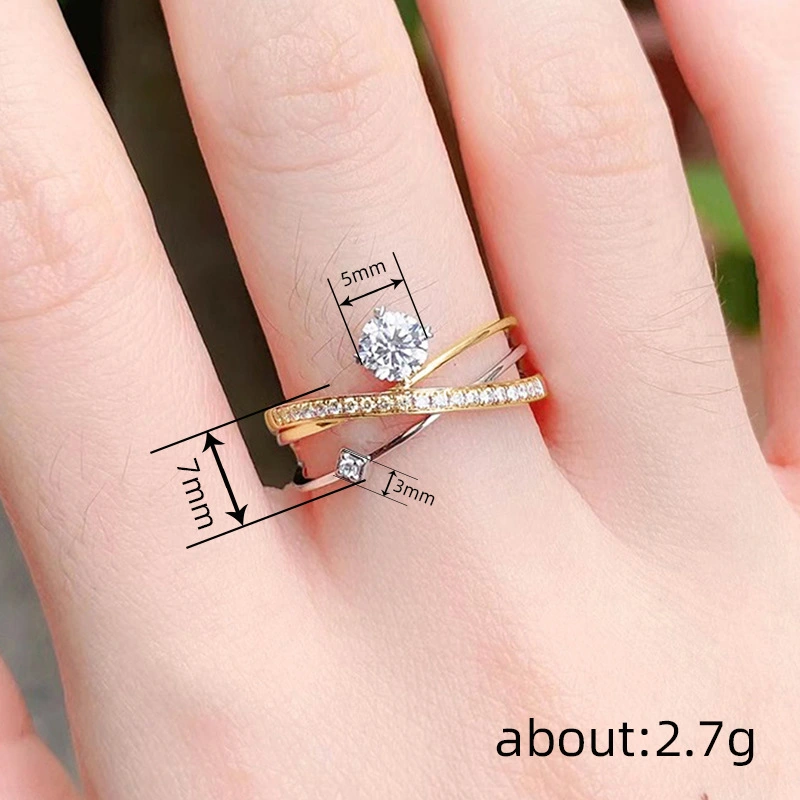 خاتم كلاسيكي مرصع بأحجار الزركون المقلد بأربعة مخالب للنساء، خاتم ذراع ملتوي مزدوج اللون، خاتم خطوبة وزواج للنساء