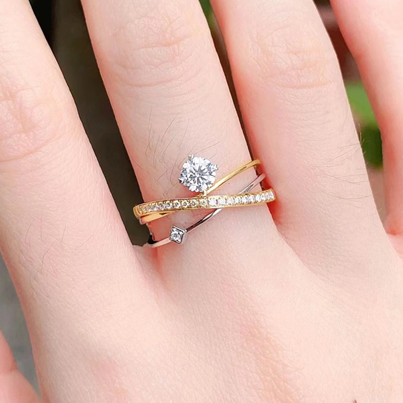 خاتم بتصميم متعدد الطبقات على الطراز الفرنسي، خاتم هندسي أنيق للنساء، مرصع بأربعة مخالب، نموذج من الزركون