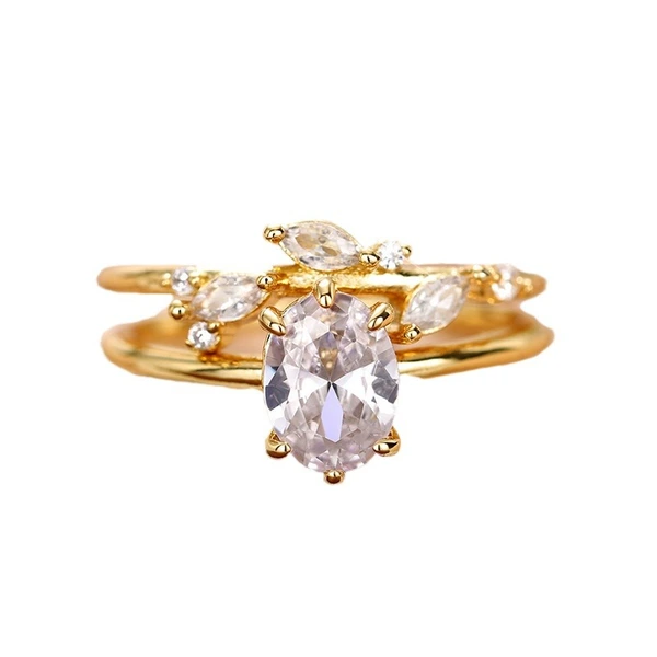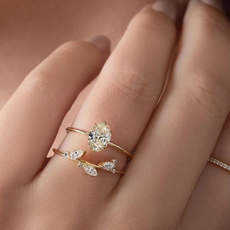 خاتم بتصميم أوروبي وأمريكي فاخر، خاتم عصري من الزركون على شكل عين الحصان، خاتم إصبع السبابة بتصميم مجوف متعدد الطبقات