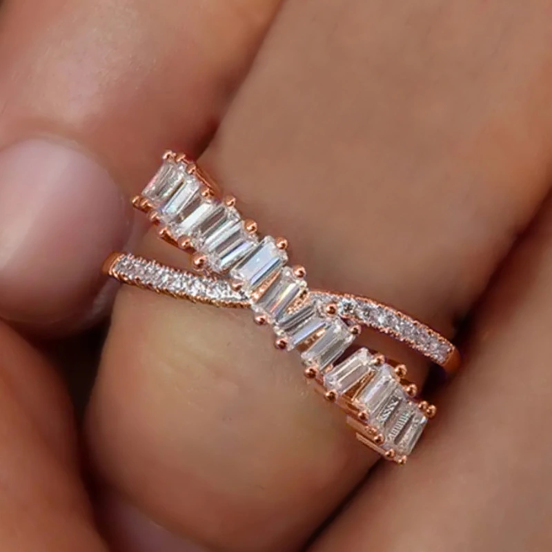 خاتم كلاسيكي مرصع بأحجار الزركون المقلد بأربعة مخالب للنساء، خاتم ذراع ملتوي مزدوج اللون، خاتم خطوبة وزواج للنساء
