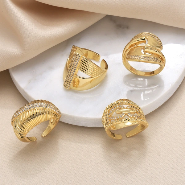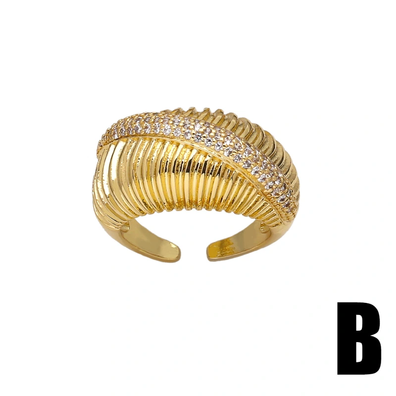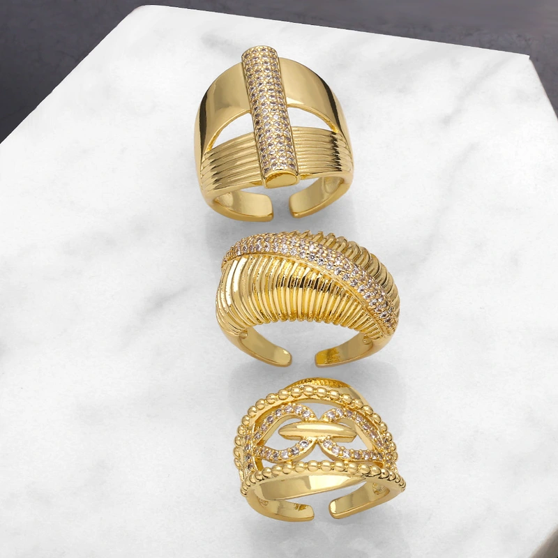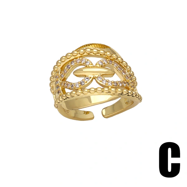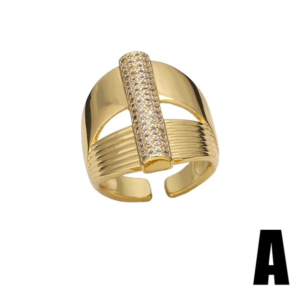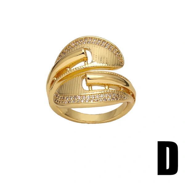 خاتم بسيط من الزركون المرصع بالأزياء الأوروبية والأمريكية، خفيف الوزن، فاخر، مطلي بالذهب، ذو طبقتين، مفتوح، rir32