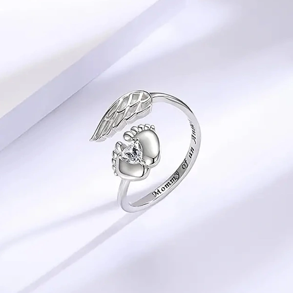 خاتم بصمة قدم الطفل الأوروبي والأمريكي محفور عليه ملاك مجوهرات شعبية هدية للأم تصميم عصري