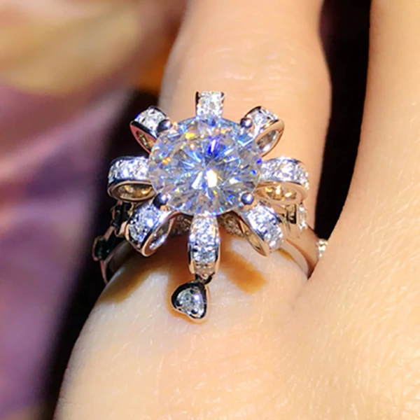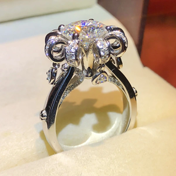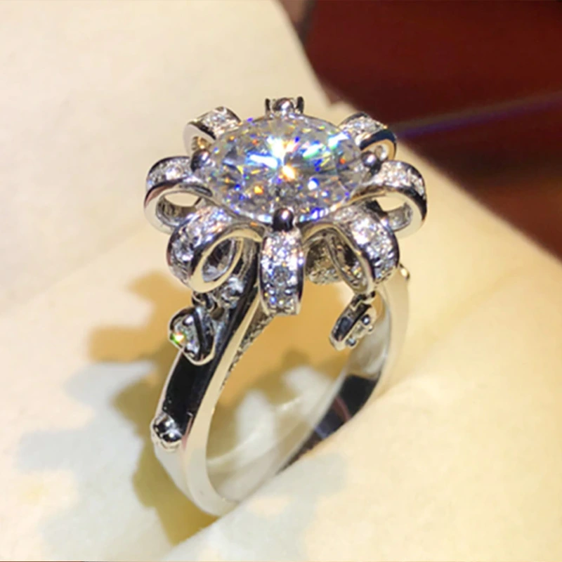 خاتم بلاتيني مرصع بالزركون من بث مباشر لمشاهير الإنترنت، خاتم ذكرى زواج أنثوي، إكسسوارات