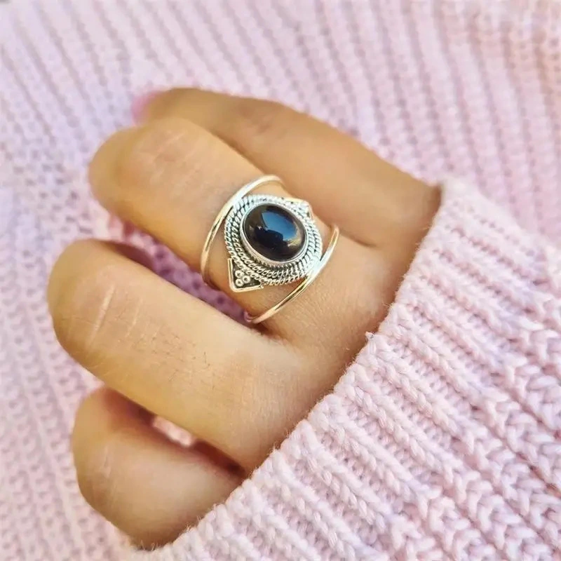 خاتم بيضاوي بسيط من المجوهرات على الطراز الأوروبي والأمريكي، خاتم بتصميم غربي عتيق