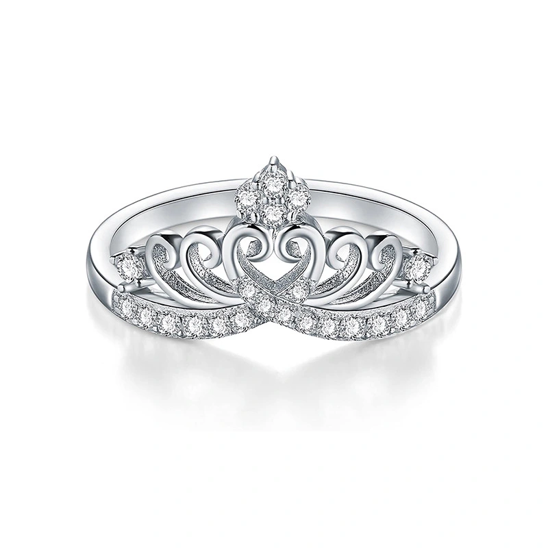 خاتم تاج الأميرة بتصميم مميز على شكل زهرة على شكل قلب خاتم إصبع السبابة للنساء عالي الجودة