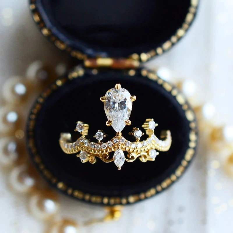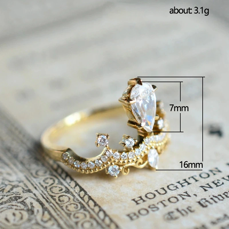 خاتم تاج للبيع الساخن من محطة مستقلة، خاتم خطوبة أوروبي وأمريكي على شكل دمعة من الزركون على شكل كمثرى