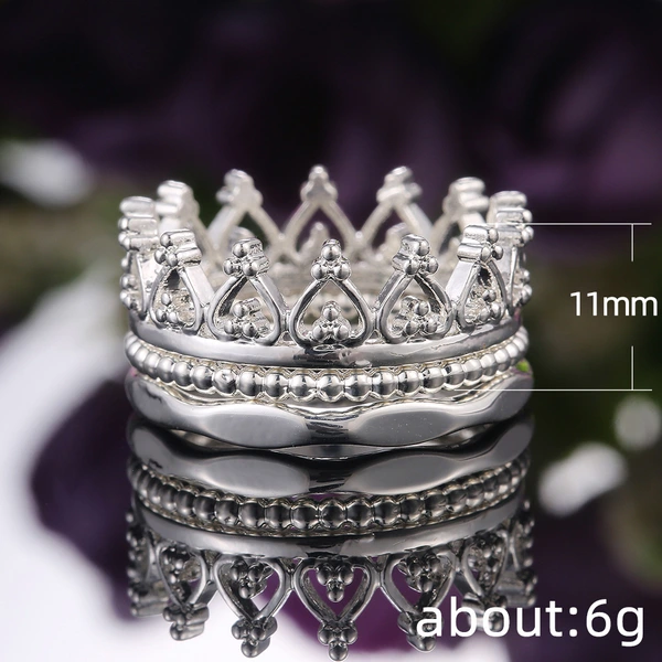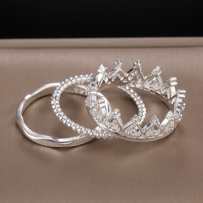 خاتم تاج مطلي بالفضة بتصميم أوروبي وأمريكية رائج البيع قابل للفصل مجموعة خواتم ثلاثة في واحد للبيع بالجملة
