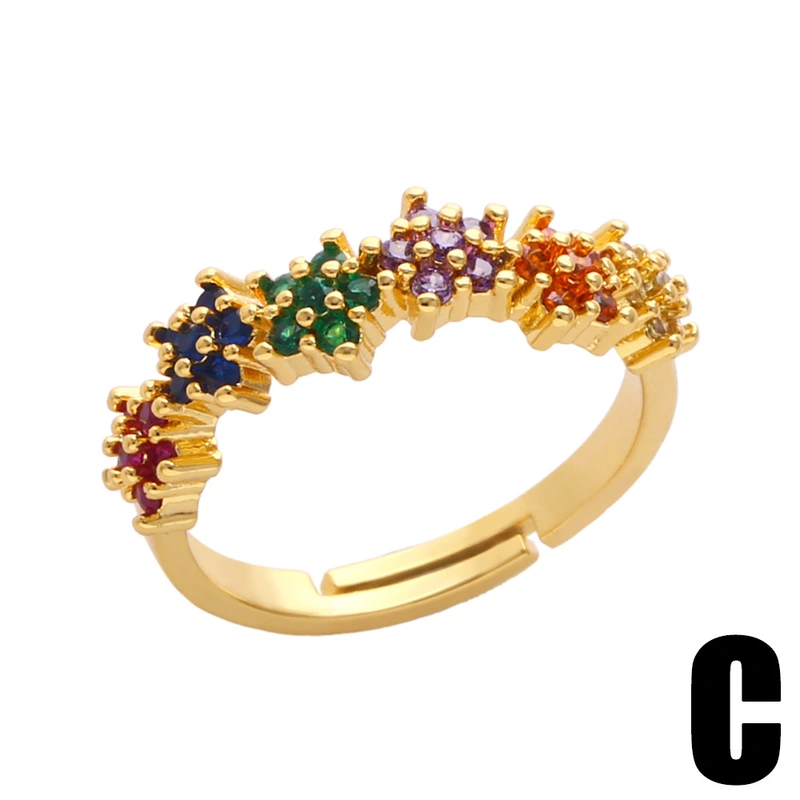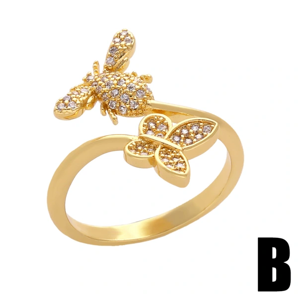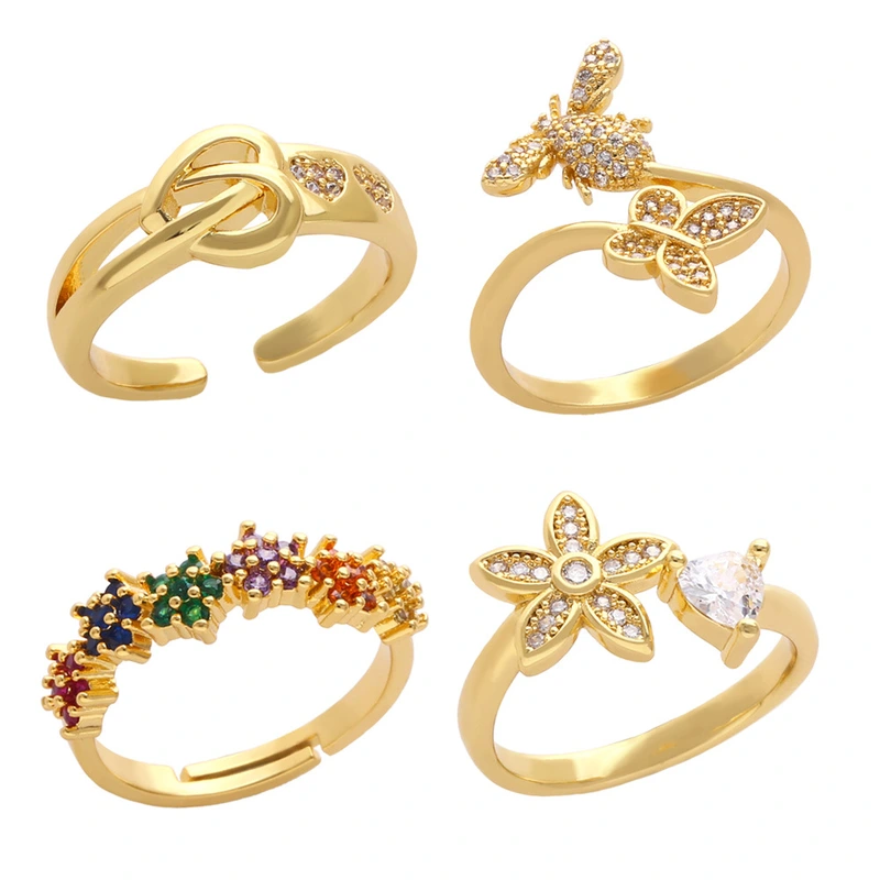 خاتم تصفية أوروبي وأمريكي مرصع بالزركون الملون خاتم زهرة أنثوي على شكل فراشة نحلة خاتم مفتوح rin75