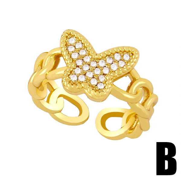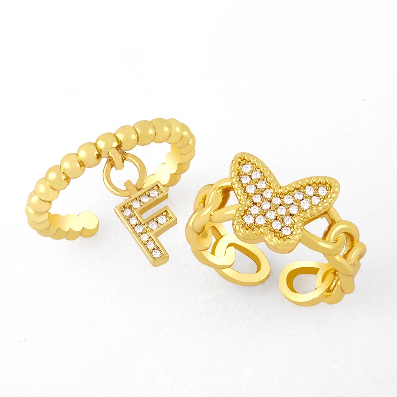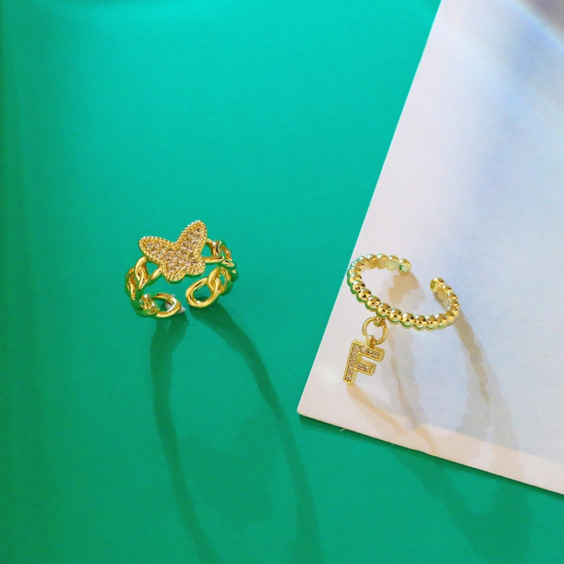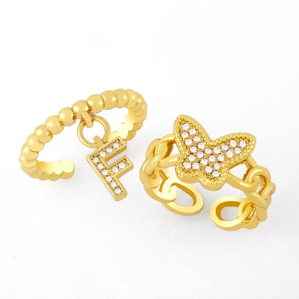 خاتم تصفية شخصية أنثوية على شكل حرف F على شكل فراشة خاتم مفتوح بمفصل إصبع السبابة بتصميم كلاسيكي على الطراز البارد rik87