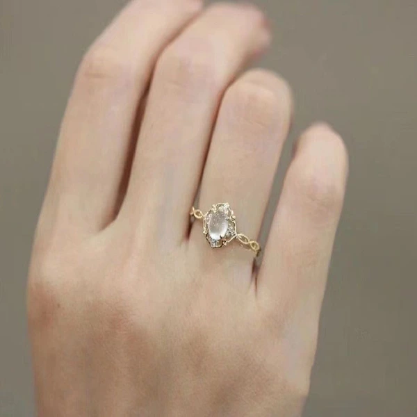 خاتم تصميم فاخر أوروبي وأمريكي، خاتم تقليد حجر القمر، خاتم عين القطة بمزاج مميز