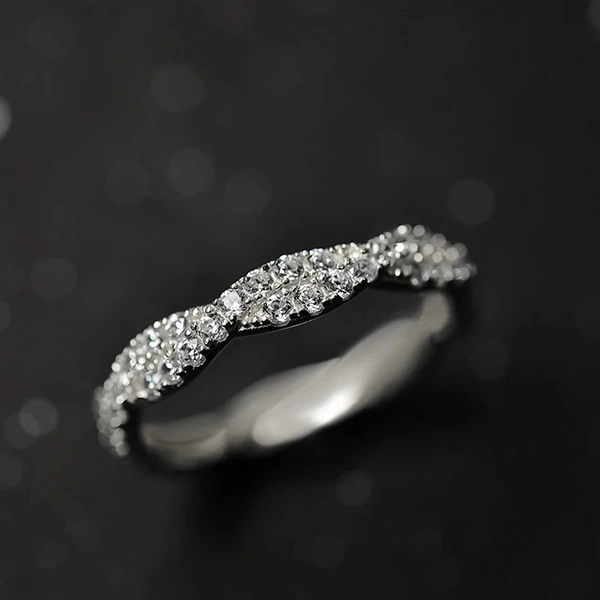 خاتم كلاسيكي مرصع بأحجار الزركون المقلد بأربعة مخالب للنساء، خاتم ذراع ملتوي مزدوج اللون، خاتم خطوبة وزواج للنساء