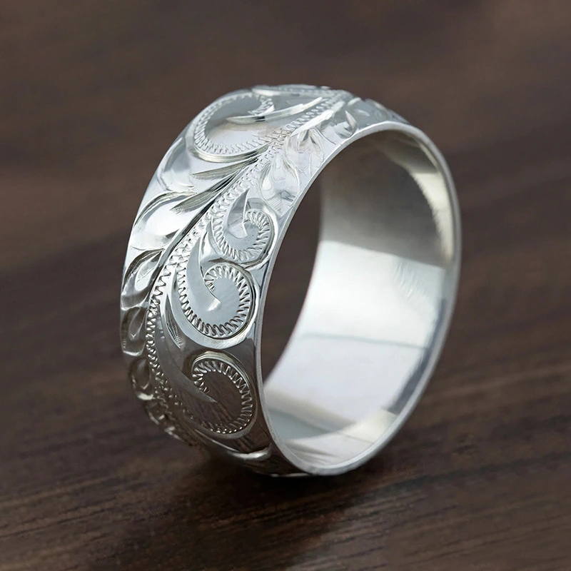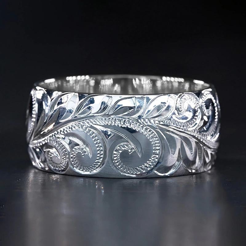 خاتم زهرة ميمونة محفورة بشكل كلاسيكي بتصميم عريض من خاتم مياو على الطراز العرقي من يونان، مجوهرات للرجال والنساء