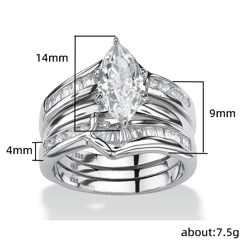 خاتم تيمو الجديد المصنوع من الزركون المقلد الأكثر مبيعًا في أوروبا والولايات المتحدة، خاتم خطوبة مكون من ثلاث قطع، خاتم إصبع السبابة