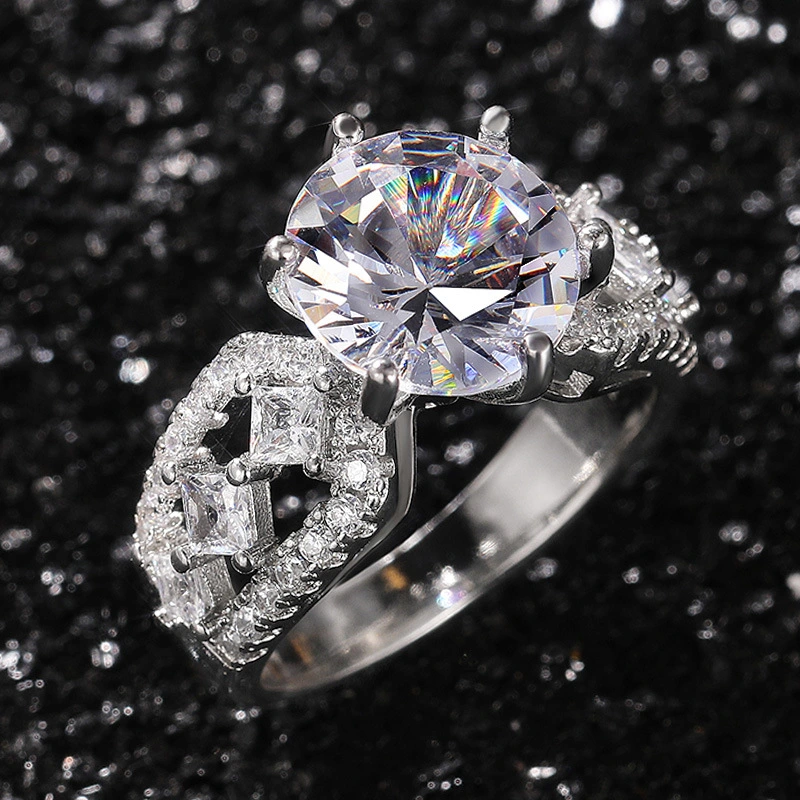 خاتم جديد أوروبي وأمريكي فاخر عالي الجودة من الزركون للنساء خاتم خطوبة مربع مجوف من الألماس