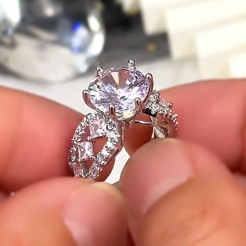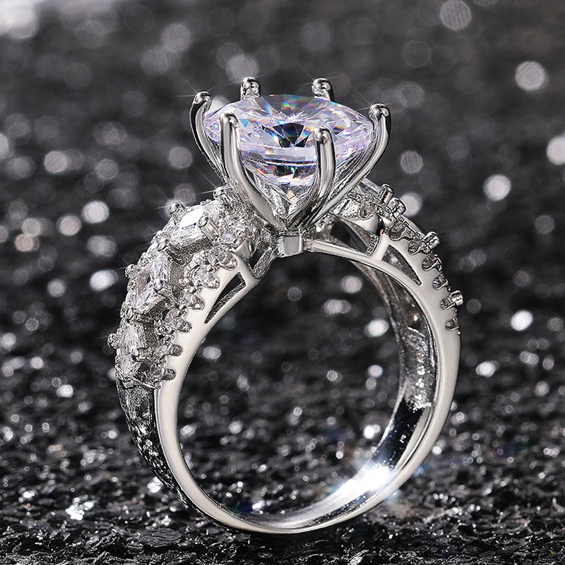 خاتم زفاف كلاسيكي مرصع بالزركون بستة مخالب على الطراز الأوروبي والأمريكي، خاتم فاخر خفيف الوزن، مناسب لجميع المناسبات، مرصع بالزركون بستة مخالب على الطراز الأوروبي والأمريكي