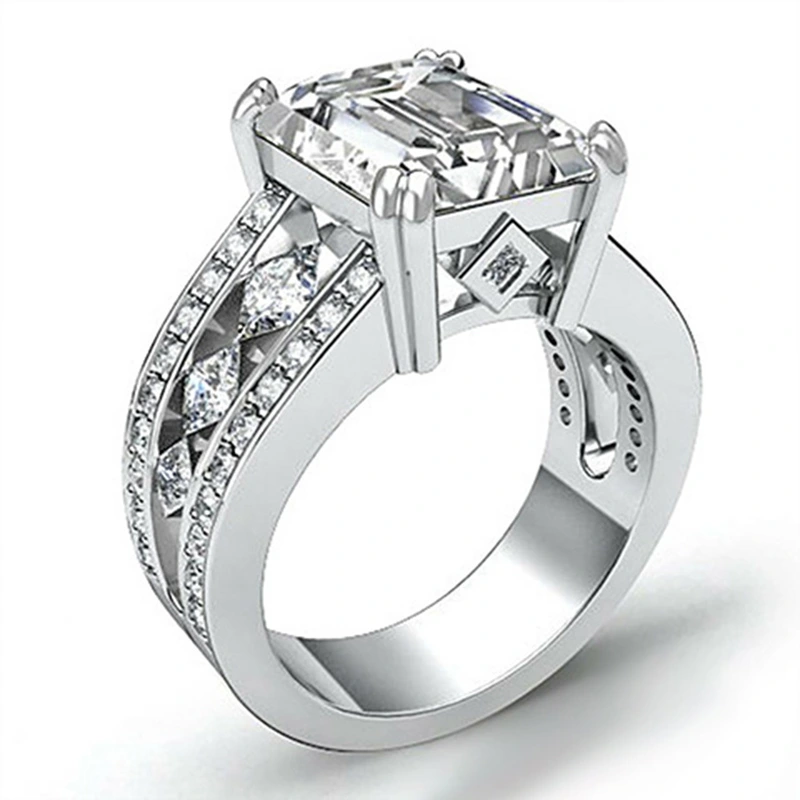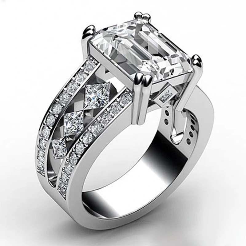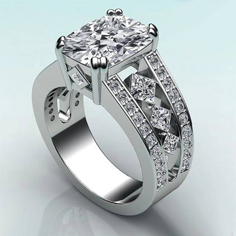 خاتم الأميرة المربع الجديد الأكثر مبيعًا على الطراز الأوروبي والأمريكي المرصع بالزركون مجوهرات نسائية خاتم خطوبة وزواج