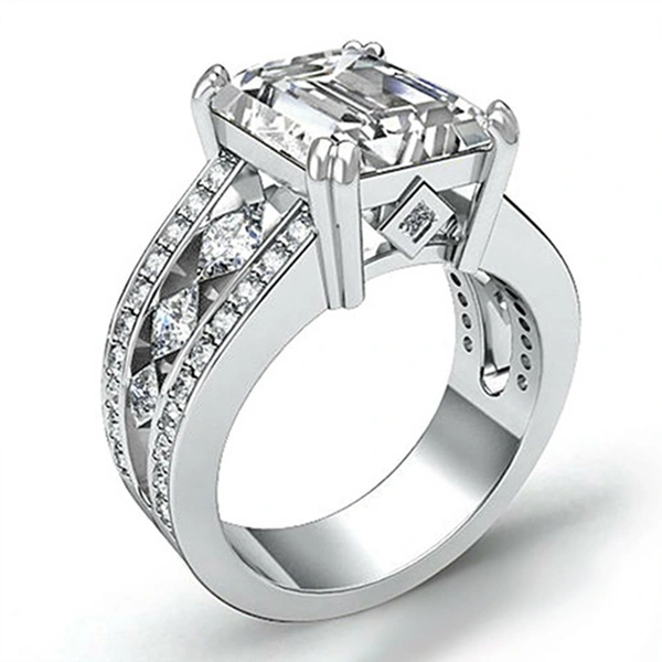 خاتم جديد أوروبي وأمريكي مبالغ فيه باللونين الأبيض والفضي خاتم عصري عالي الجودة من الزركون والألماس