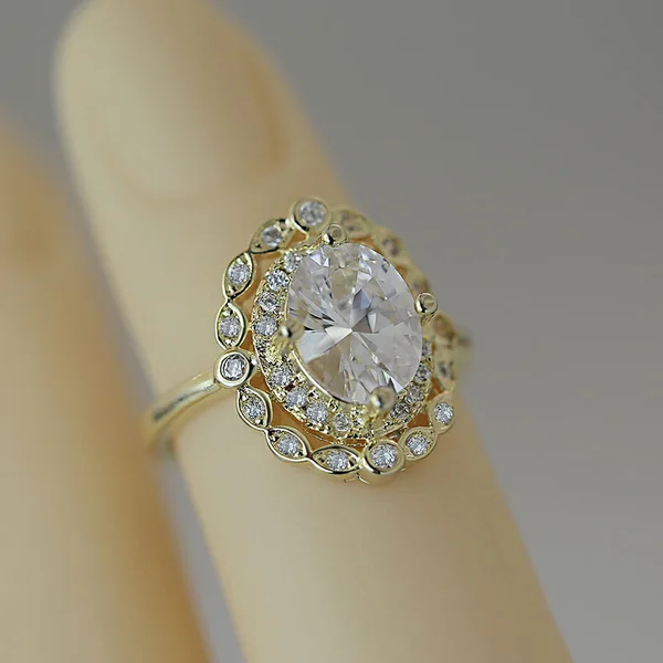 خاتم بتصميم أوروبي وأمريكي فاخر، خاتم عصري من الزركون على شكل عين الحصان، خاتم إصبع السبابة بتصميم مجوف متعدد الطبقات