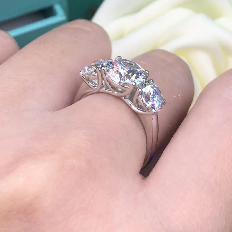 خاتم جديد بسيط بثلاثة ألماسات من الزركون للنساء، مصدر المصنع