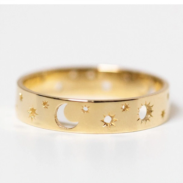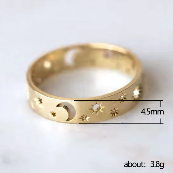 خاتم جديد بسيط على شكل نجمة وقمر مجوف على الطراز الأوروبي والأمريكي خاتم للجنسين مجوهرات نحاسية رائجة البيع