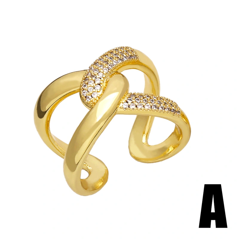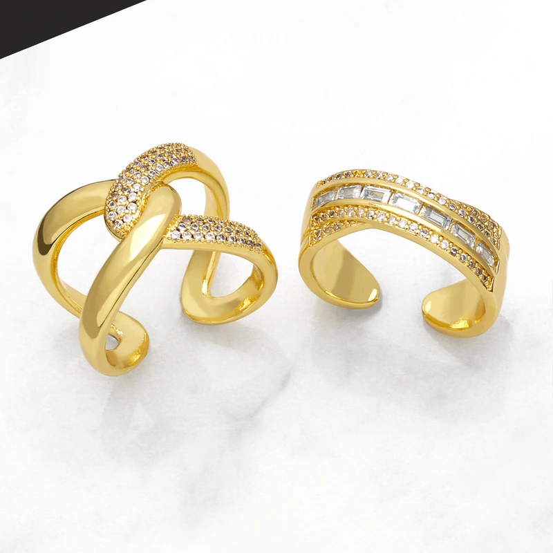 خاتم جديد بسيط وعصري من الزركون الماسي مفتوح على شكل صليب خاتم عالي الجودة على الطراز البارد rim16