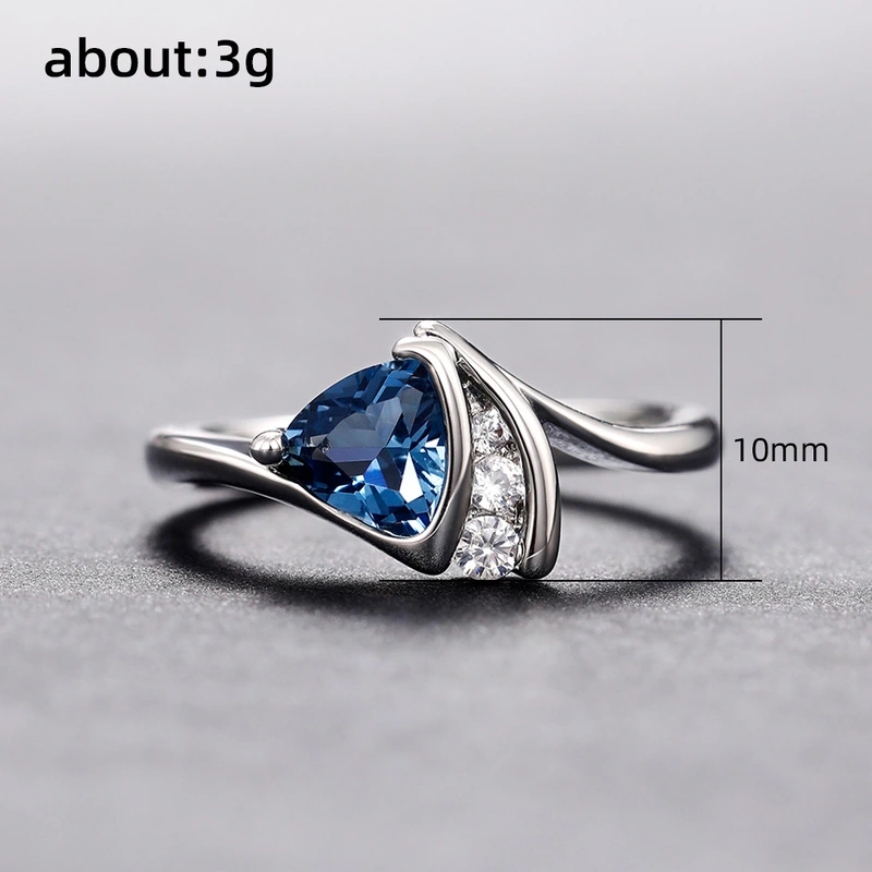 خاتم جديد رائج البيع على شكل ذراع ملتوية سمين مثلث أسود أزرق من الزركون خاتم نسائي رومانسي فاخر خفيف