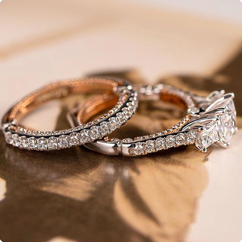 خاتم جديد رائع فاخر مرصع بالزركون للسيدات ثلاث مجموعات من الخواتم مطلية بالكهرباء إيبوكسي مجوهرات يدوية بالجملة