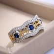 خاتم جديد رائع من الألماس المجوف ثنائي اللون للنساء بتصميم هندسي بسيط من الزركون