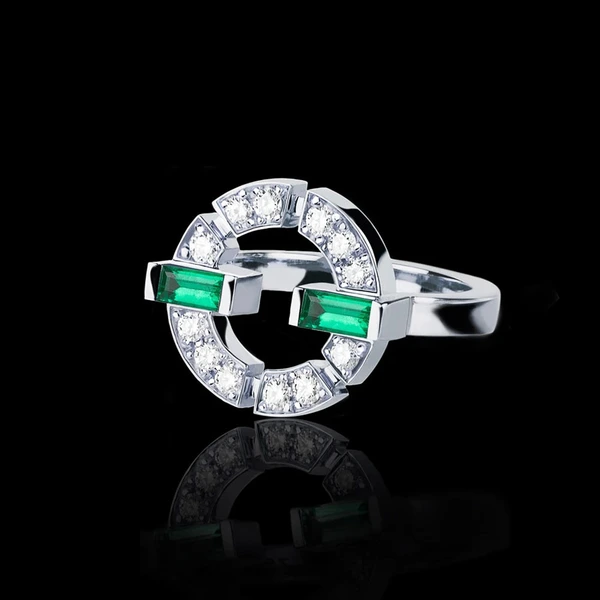 خاتم جديد رائع من الزركون الأخضر المزين بالأزياء النسائية خاتم مطلي بالنحاس من الذهب الأبيض مبيعات المصنع مباشرة